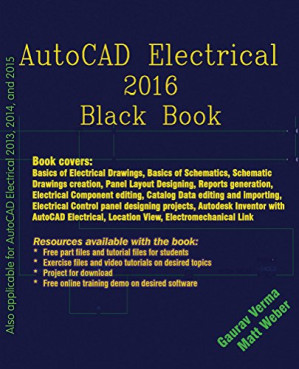 The AutoCAD Electrical 2016 Black Book , the second edition of AutoCAD Electrical Black books, has lots of new features and examples as compared to previous edition. Following the same strategy as for the previous edition, the book is written to help professionals as well as learners in performing various tedious jobs in Electrical control designing. The book follows a step by step methodology. The book covers use of right tool at right places. The book covers almost all the information required by a learner to master the AutoCAD Electrical. The book starts with basics of Electrical Designing, goes through all the Electrical controls related tools and ends up with practical examples of electrical schematic and panel designing. Chapter on Reports makes you comfortable in creating and editing electrical component reports. This edition also discusses the interoperability between Autodesk Inventor and AutoCAD Electrical which is need of industry these days. Some of the salient features of this book are : In-Depth explanation of concepts Every new topic of this book starts with the explanation of the basic concepts. In this way, the user becomes capable of relating the things with real world. Topics Covered Every chapter starts with a list of topics being covered in that chapter. In this way, the user can easy find the topic of his/her interest easily. Instruction through illustration The instructions to perform any action are provided by maximum number of illustrations so that the user can perform the actions discussed in the book easily and effectively. There are about 1000 illustrations that make the learning process effective. Tutorial point of view The book explains the concepts through the tutorial to make the understanding of users firm and long lasting. Each chapter of the book has tutorials that are real world projects. Project Free projects and exercises are provided to students for practicing. For Faculty If you are a faculty member, then you can ask for video tutorials on any of the topic, exercise, tutorial, or concept.